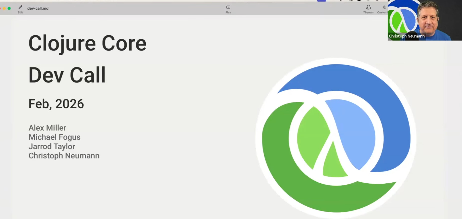 Dia 10 de fevereiro o time de Clojure organizou uma apresentação chamada de Clojure Dev Call, apresentando o que foi feito recentemente no Clojure, algumas novidades que estão rolando, e no final teve um momento para perguntas da galera.